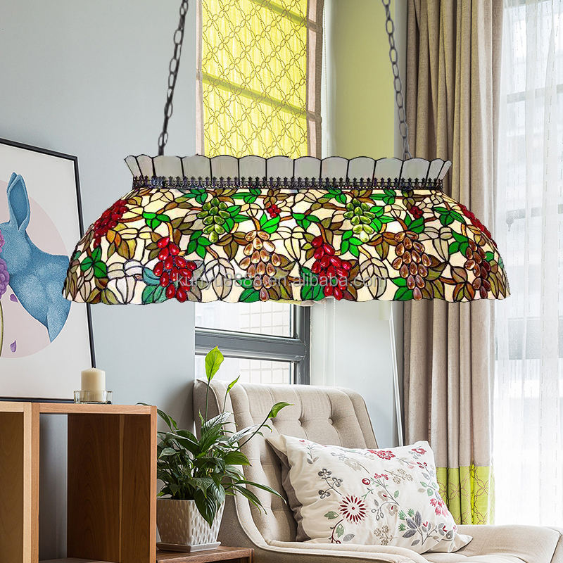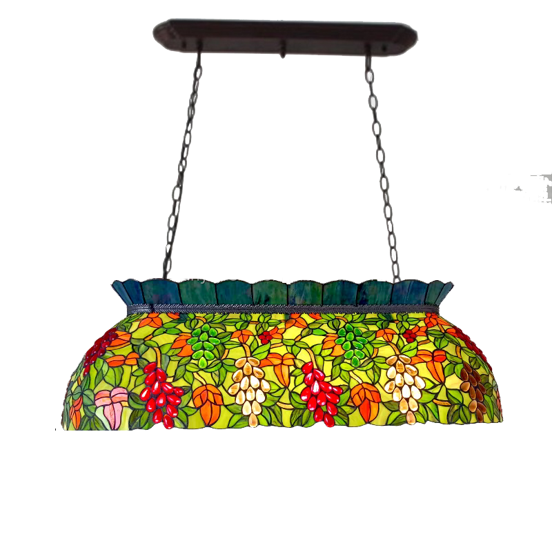 Lámpara Colgante LED Rectangular de 42 Pulgadas con Diseño de Uvas, Hecha a Mano, para Comedor, Bar, Hotel, Lámpara de Araña de Vidrio Tintado, Tamaño Mediano