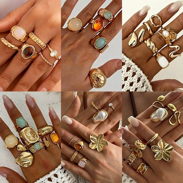 Anillos de Moda en Oro, Joyería Nueva, Anillos Geométricos Irregulares Lisos, Conjunto de Anillos para Mujer, Regalo para Mujer