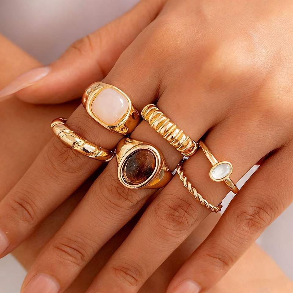 Anillos de Moda en Oro, 421, Nueva Joyería de Moda, Anillos Geométricos Irregulares Lisos, Juego de Anillos para Mujer, Regalo para Mujer