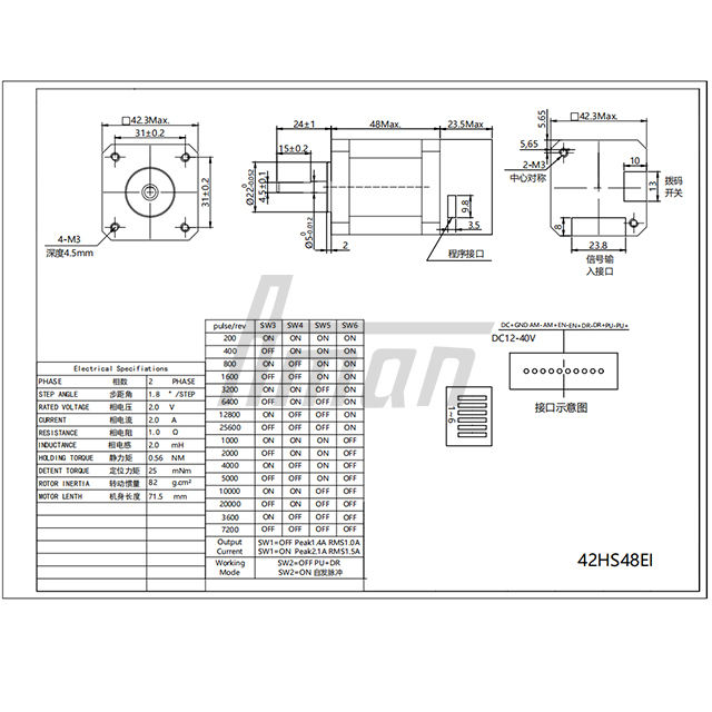 Motor paso a paso integrado de circuito abierto de 2 fases 42HS48EI NEMA 17 híbrido, 0.56N.m de par, para robot industrial y maquinaria textil