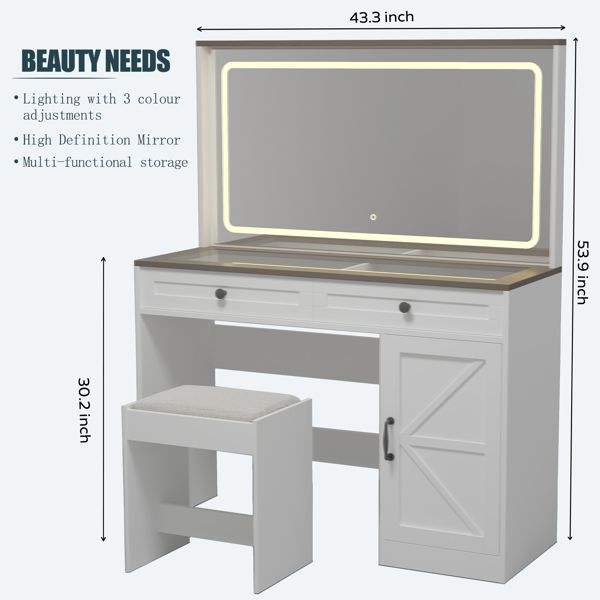 Espejo Grande de 43.3 Pulgadas con Tira de Luces LED, Brillo Ajustable, para Mesa de Maquillaje, Tocador, Escritorio 3