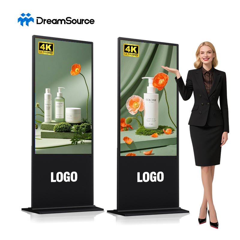 Pantallas de Señalización Digital LCD HD de 43, 49, 55 y 65 Pulgadas con Soporte de Pie, Kiosco Publicitario con Animación, WiFi/USB/CMS y Pantalla Táctil