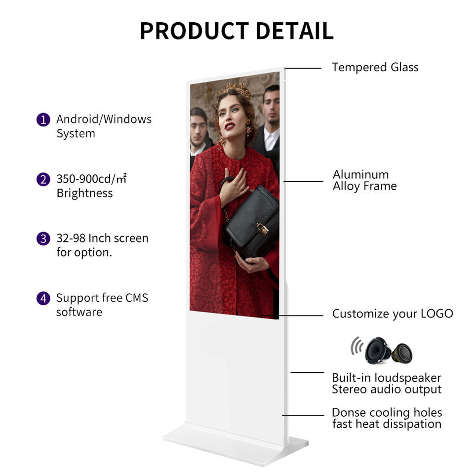 43 55 65 pulgadas interior 500NITs 4K pantalla LCD centro comercial reproductor de señalización digital