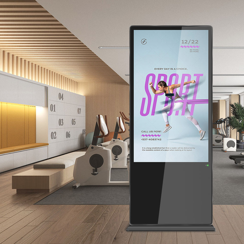 Reproductor de publicidad LCD de pie de 43 pulgadas, pantalla táctil interior, Monitor digital Hd opcional