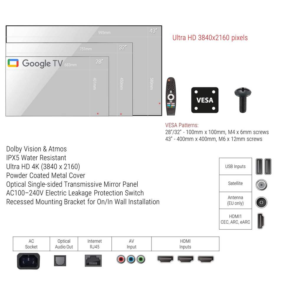 Espejo Inteligente para Baño de 43 Pulgadas, Impermeable, con Control por Voz y Wi-Fi