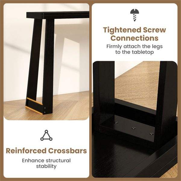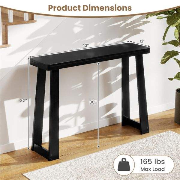 Mesa Consola para Entrada de 43 Pulgadas, Ahorra Espacio, de Madera de Caucho Sólido Negra, para Pasillos Pequeños
