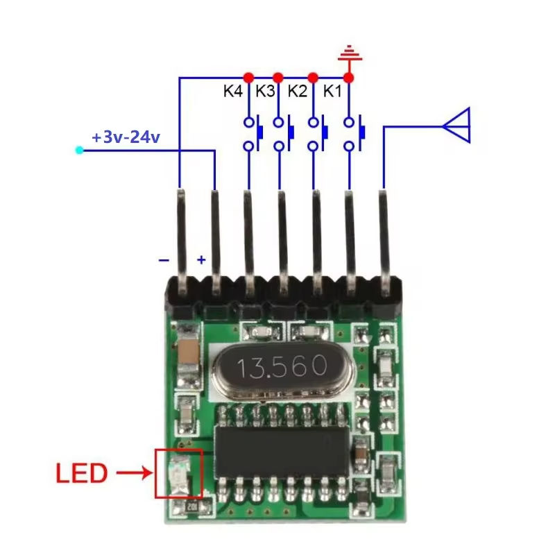 Transmisor de Codificación de Voltaje Amplio Inalámbrico de 433mhz + Receptor de Decodificación, Módulo de Salida de 4 Canales para Controles Remotos de 433 Mhz QIACHIP