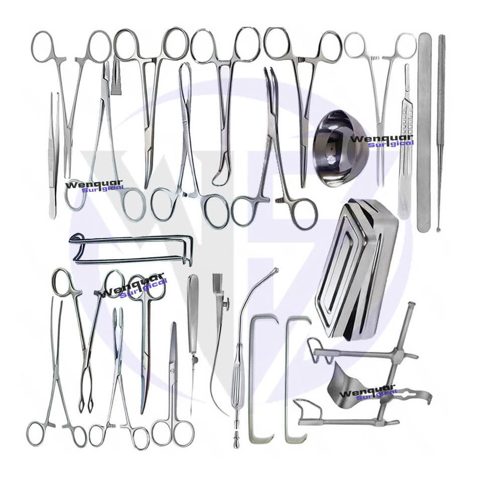 Juego de 44 Piezas de Instrumentos Médicos Quirúrgicos para Apendicectomía y Reparación de Hernias, Incluye Portaagujas Mayo Hegar y Pinzas Backhaus