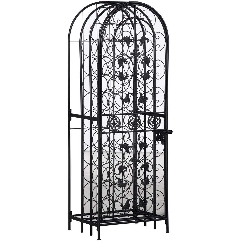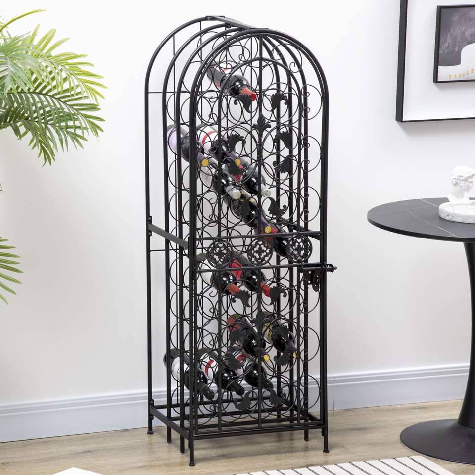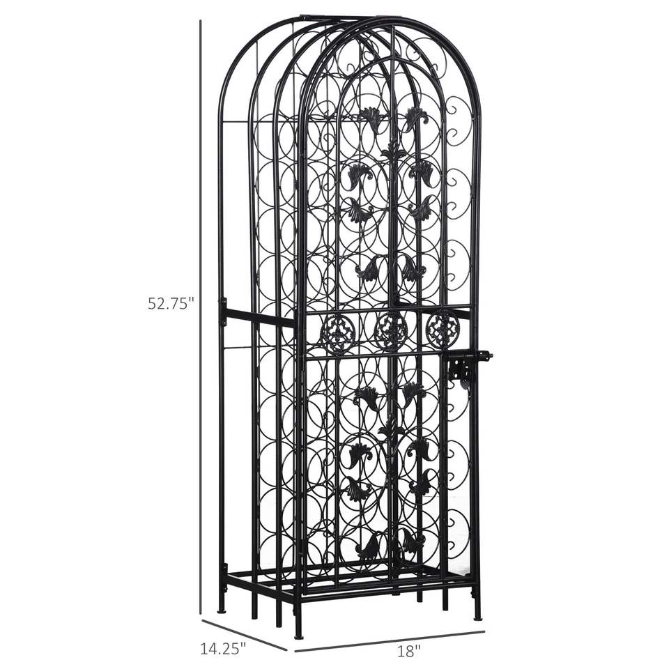 Estante para 45 Botellas de Vino de Hierro Forjado con Cerradura, Diseño Estilo Jaula Negra