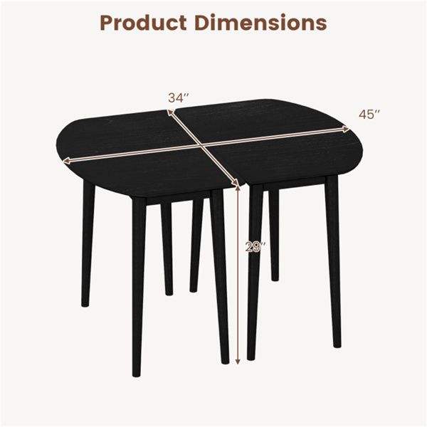 Juego de Mesa de Comedor Convertible Negra de 45 Pulgadas, 2 Mesas Semicirculares Extensibles a Ovaladas, con Capacidad para 4-6 Personas