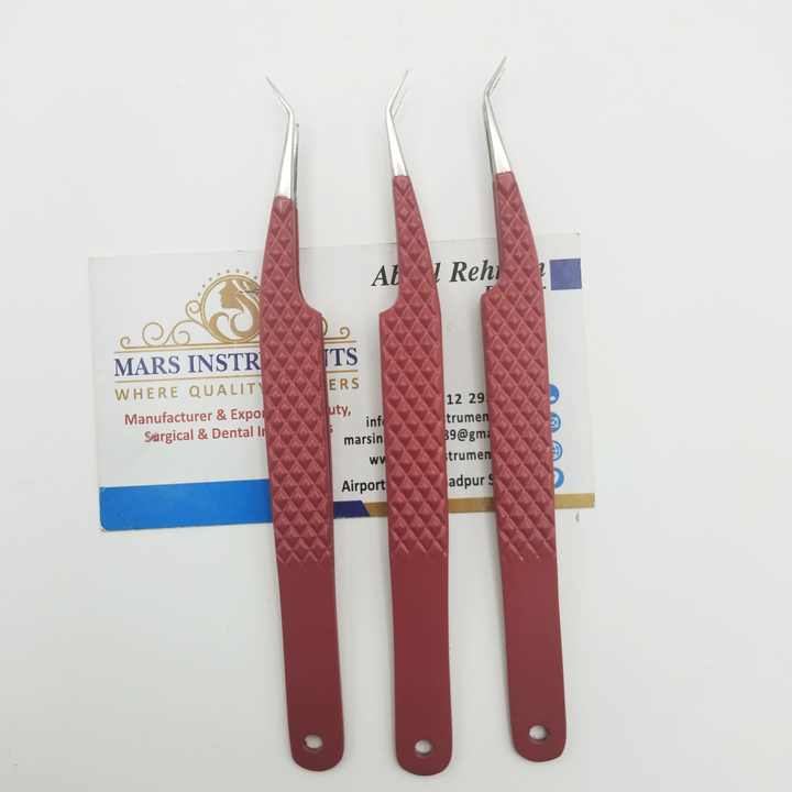 Pinzas de extensión de pestañas con mango de agarre de diamante de Color rojo de punta afilada de 45 grados