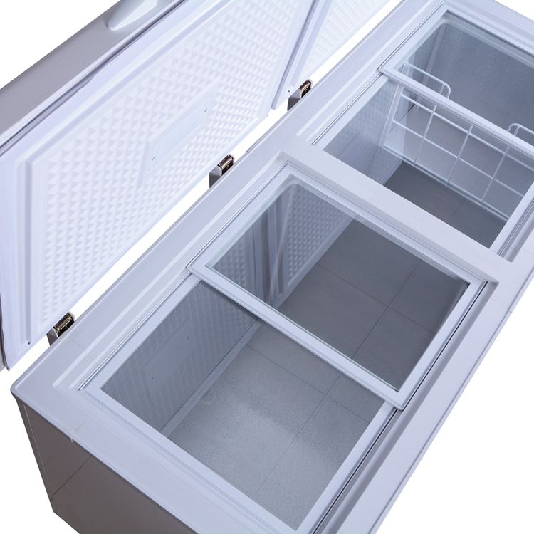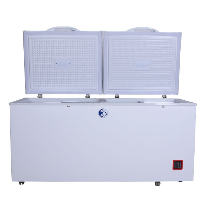 Congelador solar profundo de 450L, 12V, 24V, CC, congelador de pecho con aislamiento super grueso para comestibles
