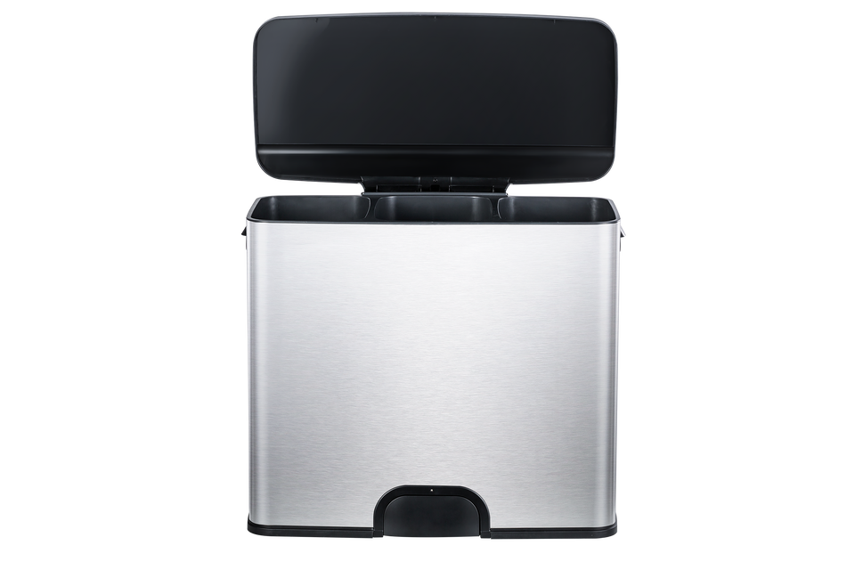 Cubo de basura Rectangular para cocina, papelera de reciclaje con 3 compartimentos de acero inoxidable, 45l