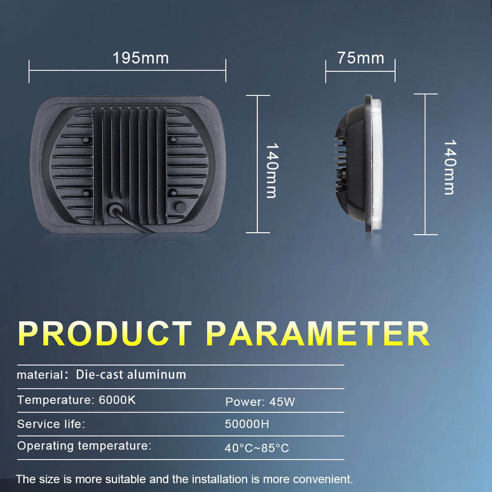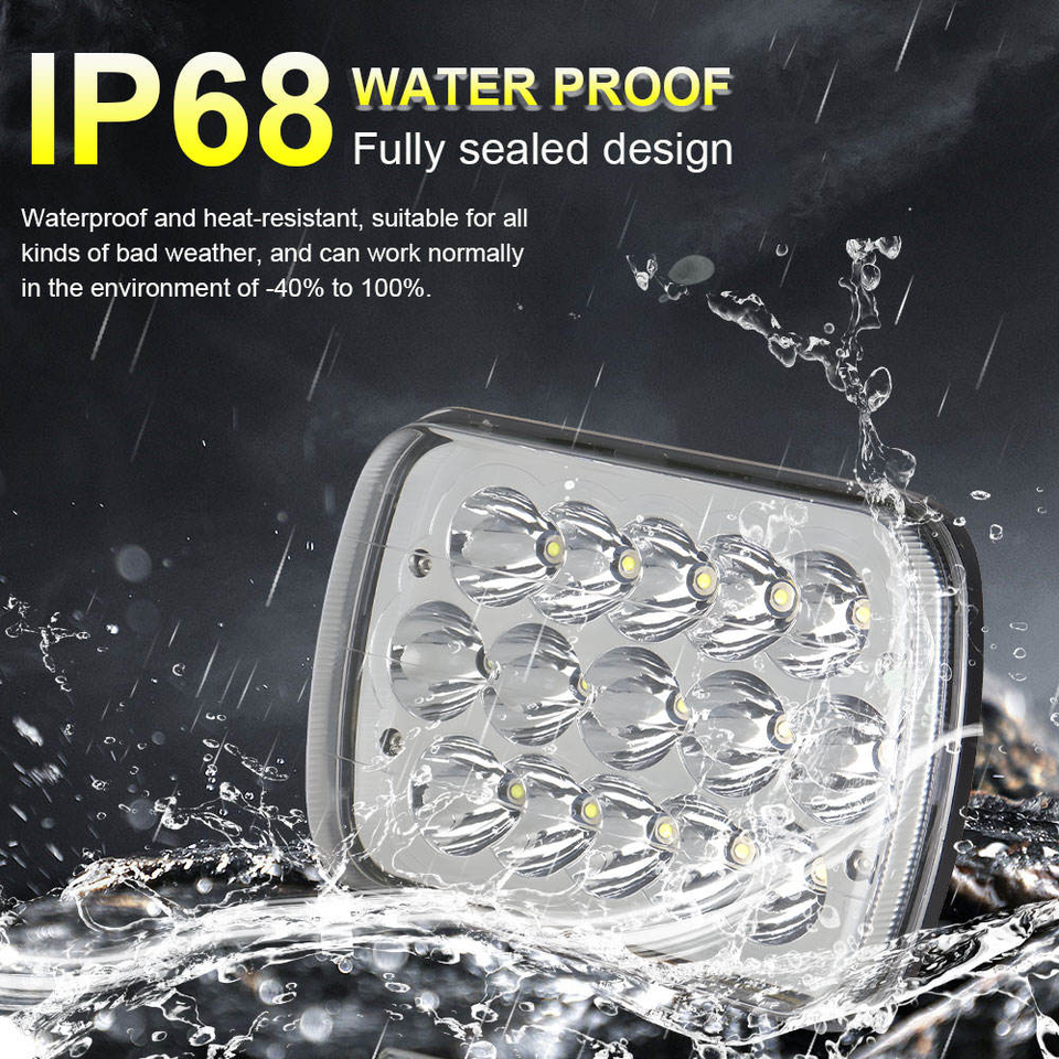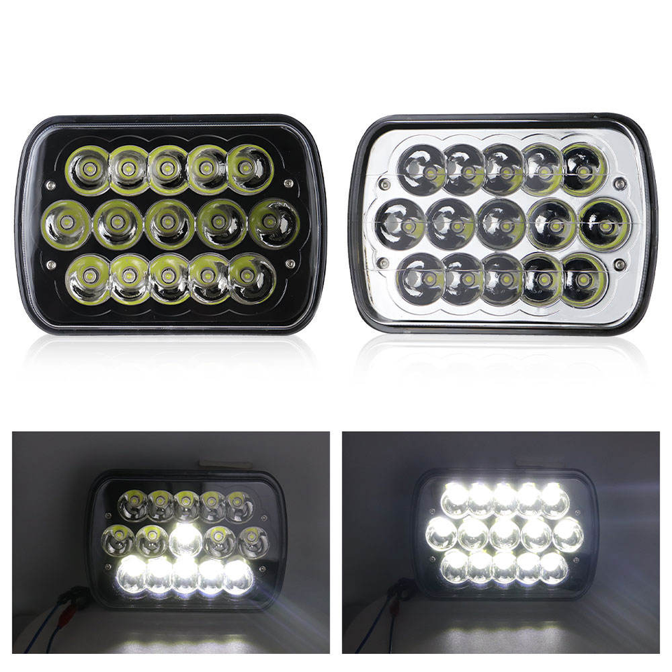 Nuevo Faro Delantero LED para Automóvil de 45 W, 6000 LM, 12 V, 6000 K, Resistente al Agua, Luces Antiniebla, Luz Alta/Baja, Forma Cuadrada de 5x7 Pulgadas, Ajuste Universal