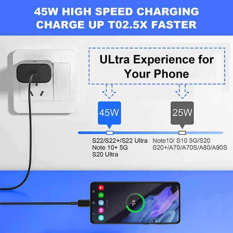 Cargador rápido 45W GaN PD USB-C para Samsung S23/S24 Plus, paquete para EE. UU., cable de carga para móvil y portátil, compatible con Motorola