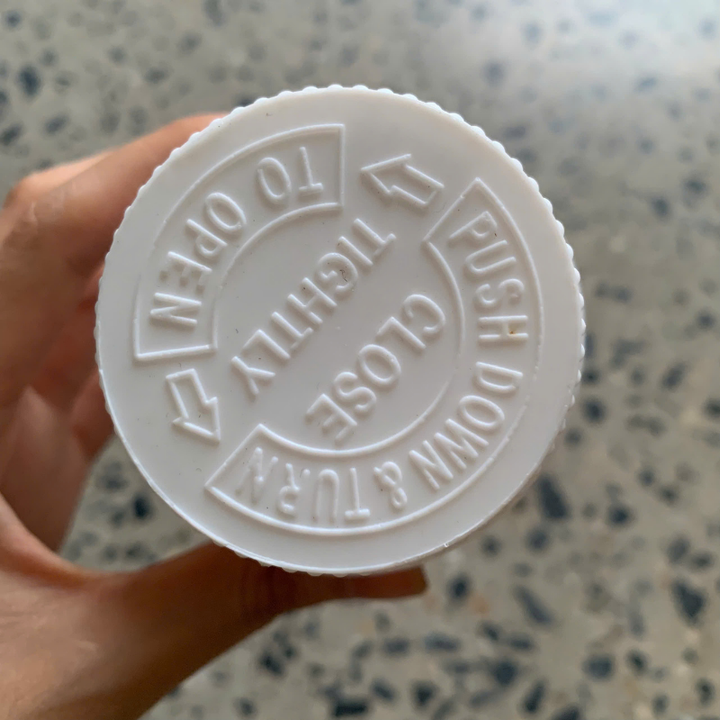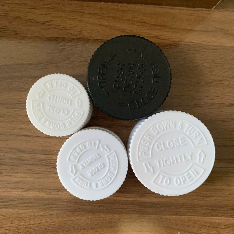 Tapa resistente a los niños de 45mm, tapa de empuje hacia abajo y giro para botella de píldora, contenedor de suplemento, embalaje farmacéutico