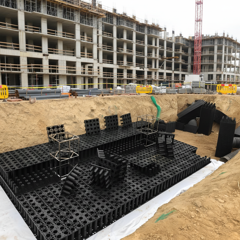 Tanque de Retención de PP con Resistencia a la Carga de 45t/m2, para Estacionamientos, Entradas de Vehículos, Bordes de Carreteras y Pasarelas, con Certificado CE y del Reino Unido