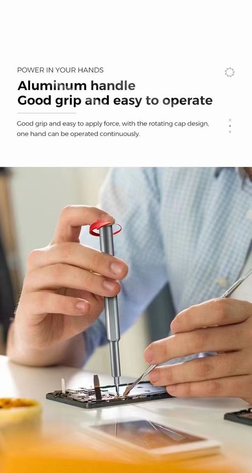 Destornillador magnético: La función magnética ayuda a sujetar los tornillos de manera segura, mejorando la eficiencia y precisión durante las tareas de montaje y desmontaje.
