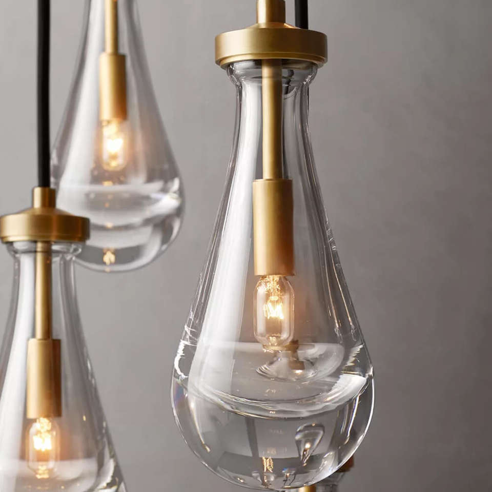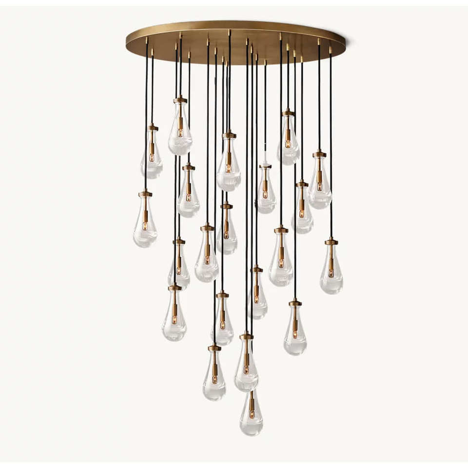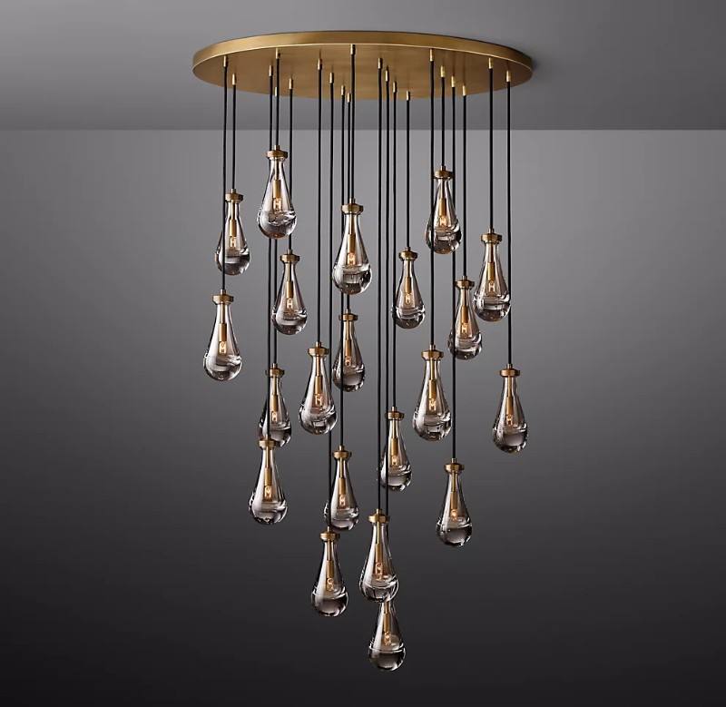 Lámpara Colgante LED de 46 Pulgadas con Diseño de Gotas de Lluvia, Regulable, Moderna, de Cristal, para Sala de Estar, Escalera, Lujosa, de Latón