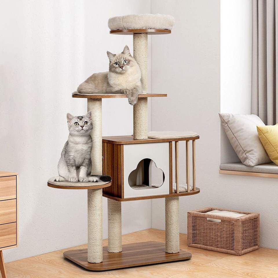 Árbol de Actividades para Gatos de Madera de 46 Pulgadas con Plataforma y Cojines para Gatos y Amantes de los Gatos, Rascador Premium para Gatos