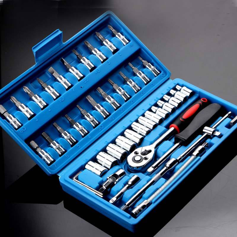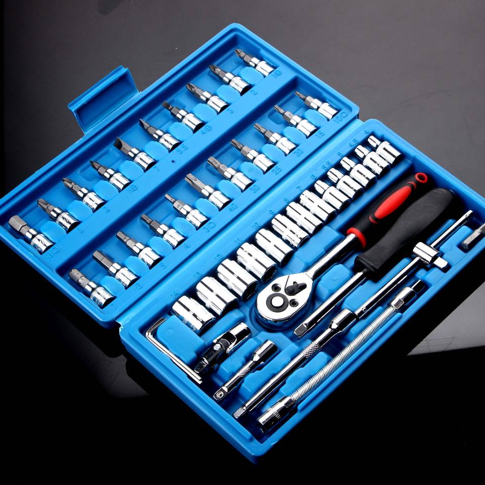 46 Pcs Blue Auto Repair Tool Set 6.3mm Metric Ratchet Wrench Kit For Car Motorcycle Maintenance