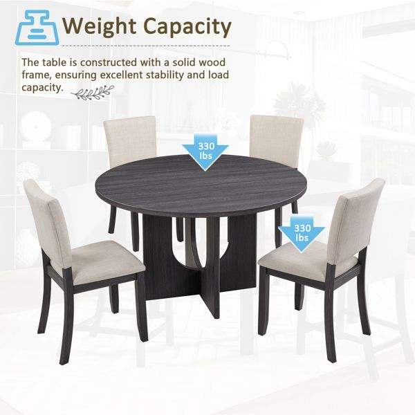 Juego de Comedor Redondo Moderno de 47.3 Pulgadas con 4 Sillas Tapizadas, Juego de Mesa de Comedor de 5 Piezas para el Comedor