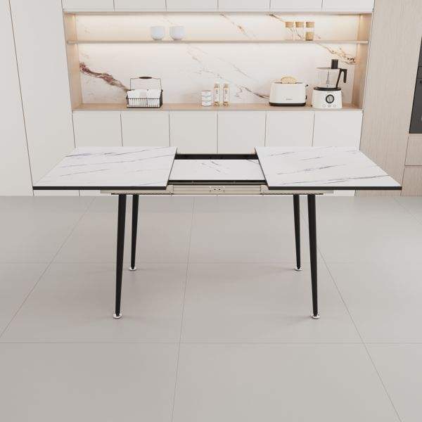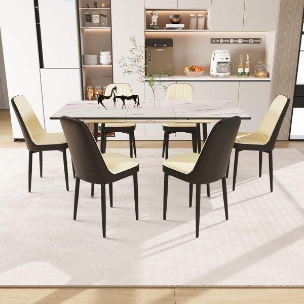Juego de Mesa de Comedor Extensible de 47 y 63 Pulgadas para 2-6 Personas, Sillas de Comedor Elegantes con Tapicería de PU y Cojines Gruesos para el Comedor