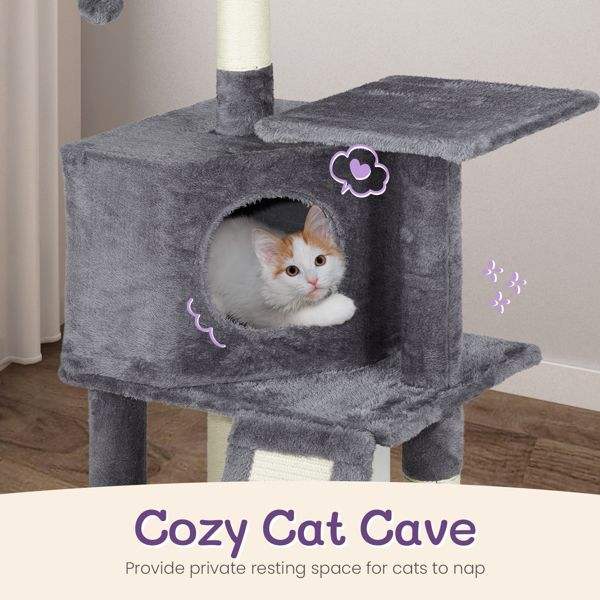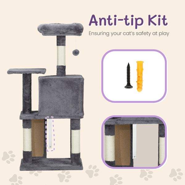 Torre para Gatos de 47 Pulgadas, Acogedora, para Gatos de Interior, con Cama Acolchada, Plataforma, Juguete, Bola y Rascador