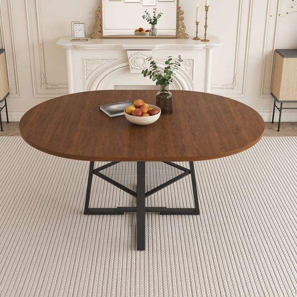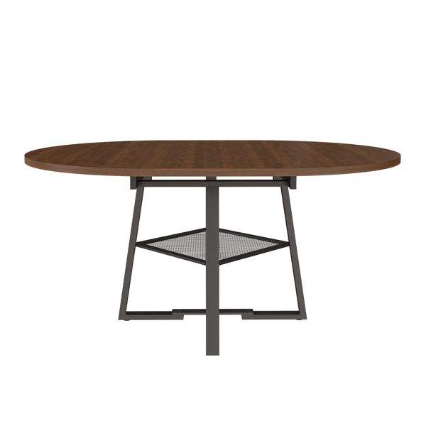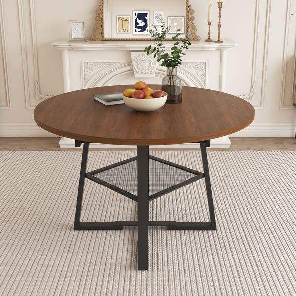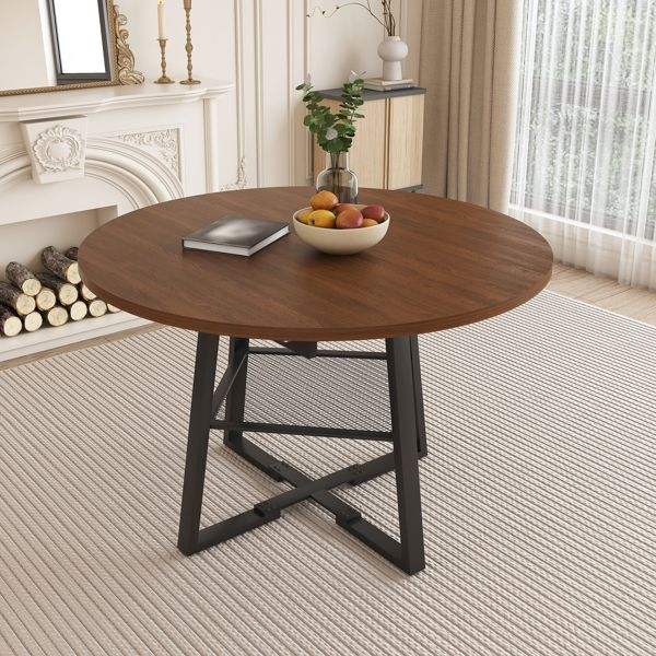 Mesa de Comedor Extensible de 47 Pulgadas con Acabado en Nogal, con Almacenamiento, Marco Redondo de Metal Reforzado, para 4-8 Personas, Estilo Mesa de Comedor Circular