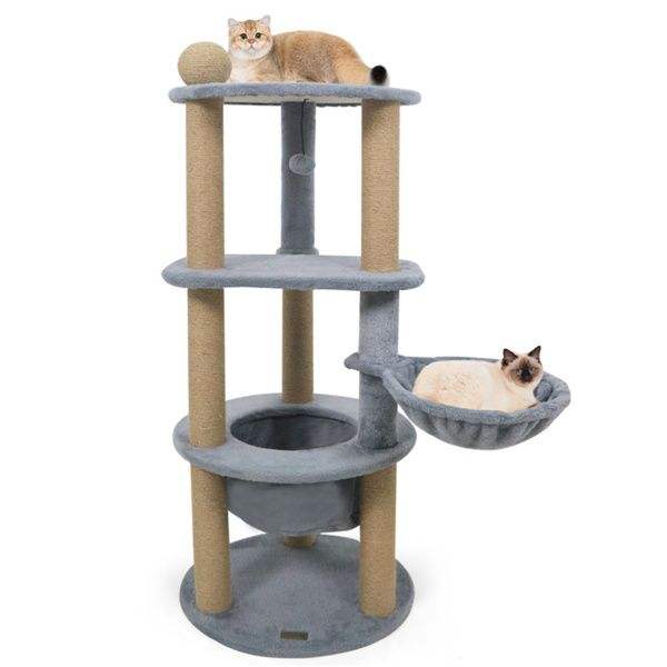 Torre para Gatos de 47 Pulgadas, Color Gris Claro, Multinivel, con Postes para Rascar, para Relajación y Juego