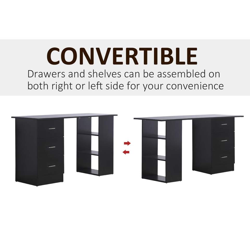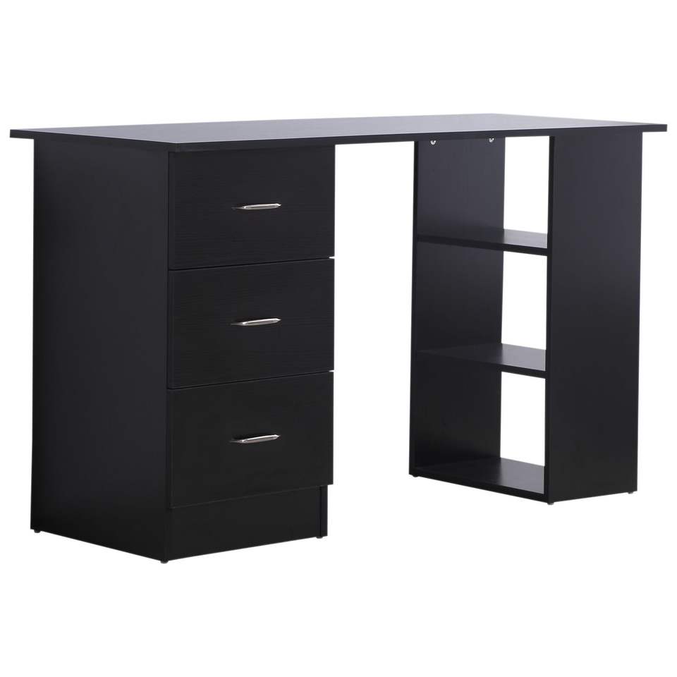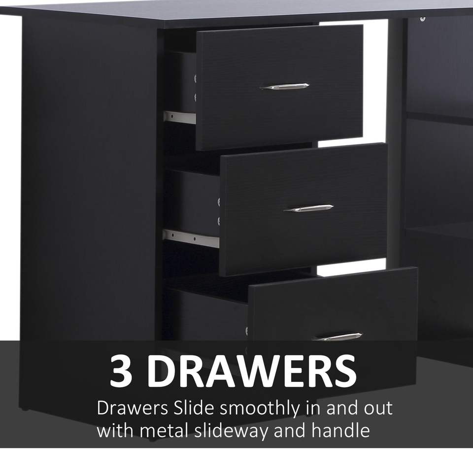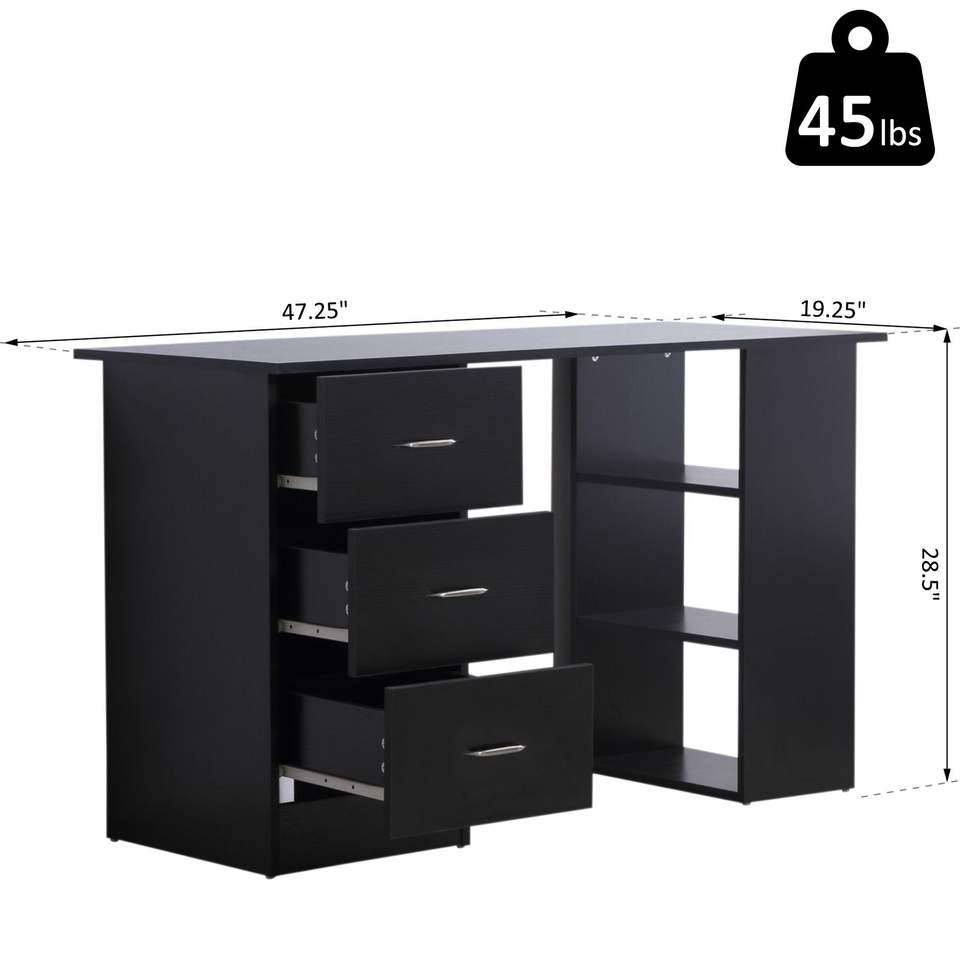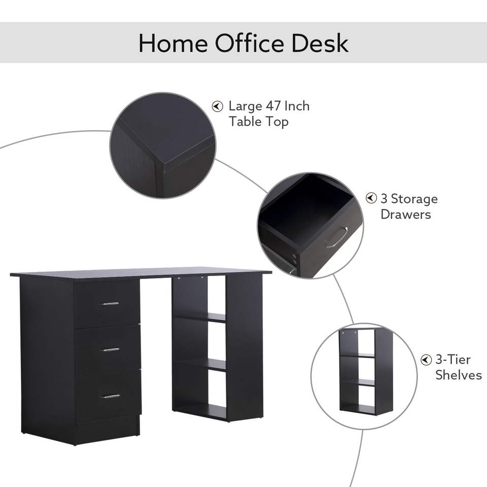 Escritorio Moderno para Oficina en Casa de 47 Pulgadas con Estantes de 3 Niveles y 3 Cajones de Almacenamiento - Negro