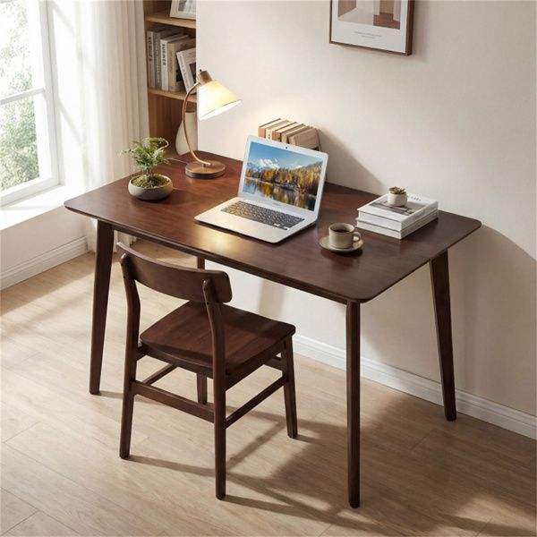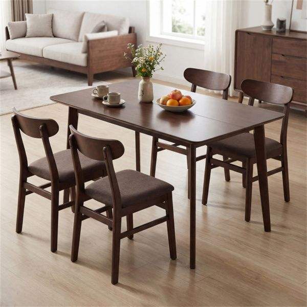 Mesa de Comedor de Nogal de 47 Pulgadas con Tablero Enchapado Liso y Patas de Madera de Caucho para 4-6 Personas, Mesa de Cocina