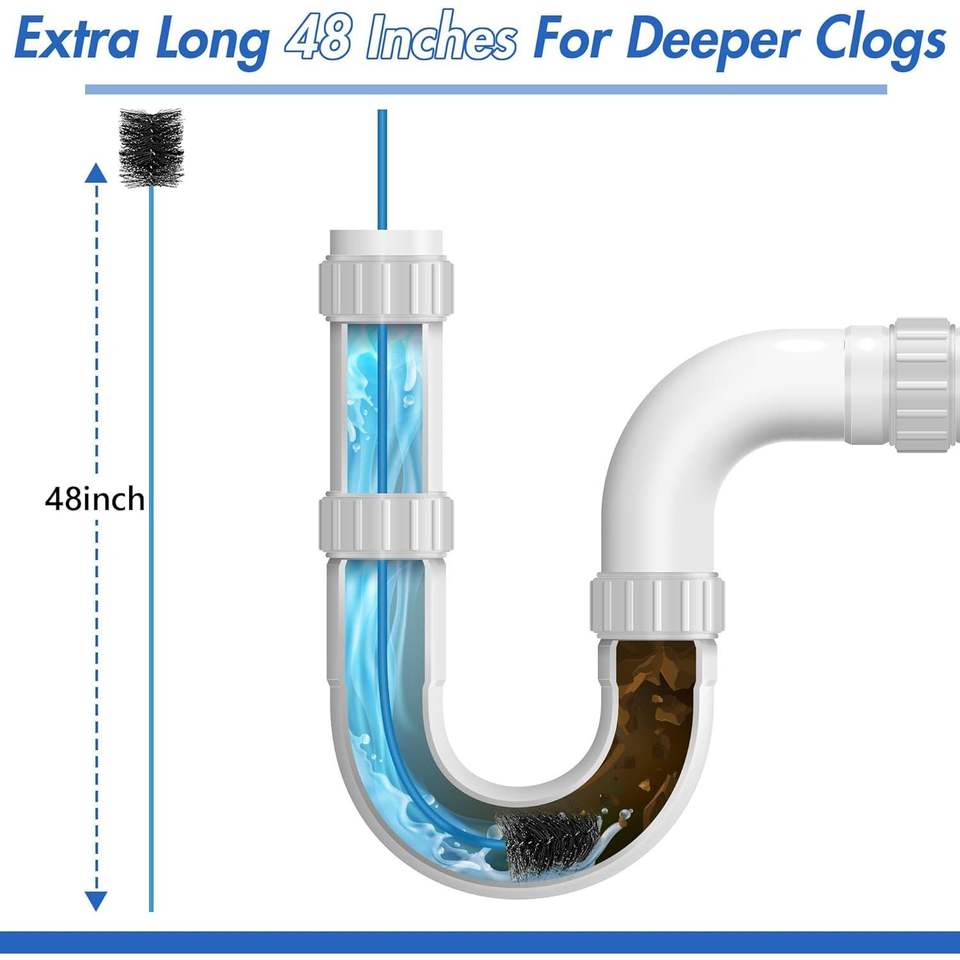 Cepillo de limpieza de tuberías de drenaje de CA de 48 pulgadas, 3 piezas, cepillo flexible para trampas de condensado de CA/HVAC, pieza para sistemas HVAC