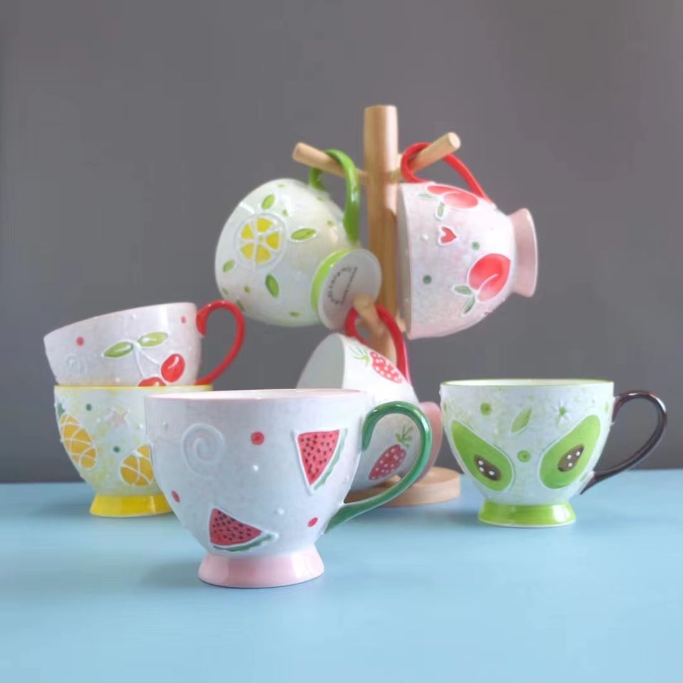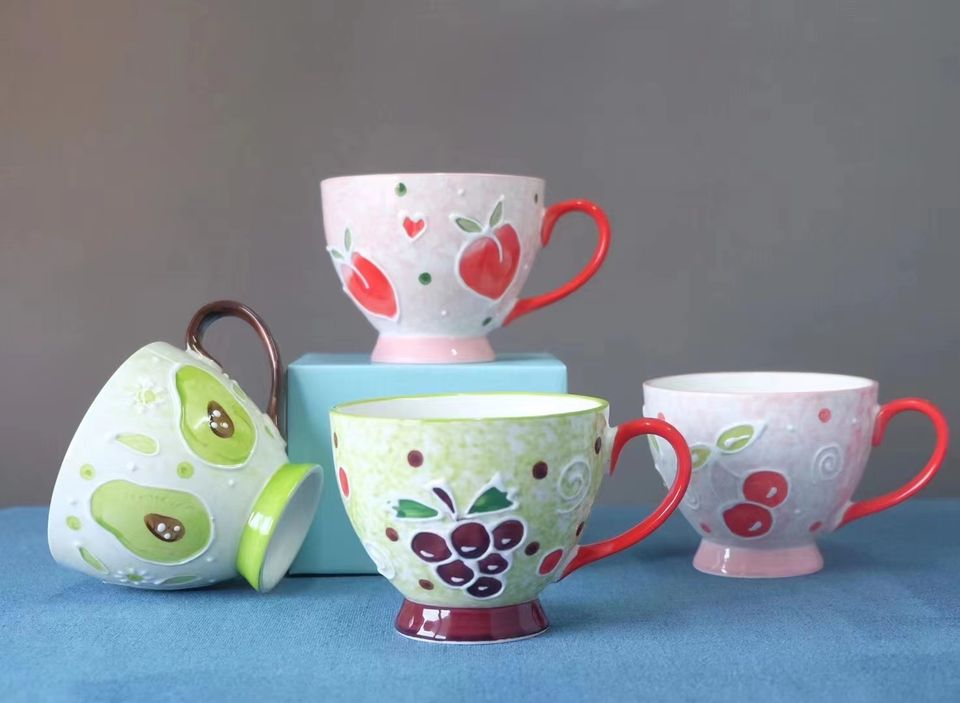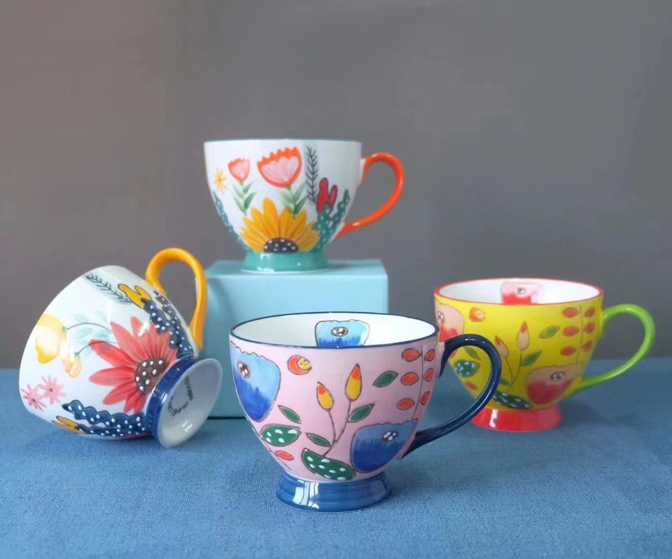 Tazas de cerámica pintadas a mano, creativas, 3D, con mango, para café, té, leche, desayuno, regalos bonitos, 48 Uds.