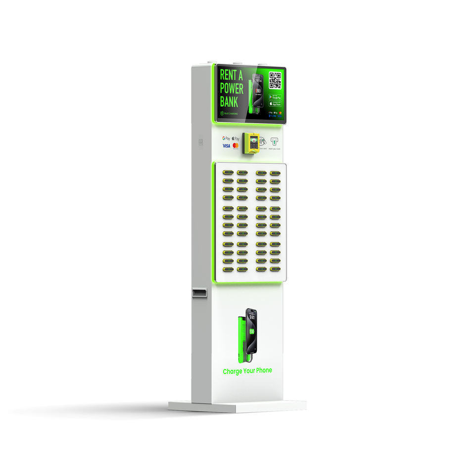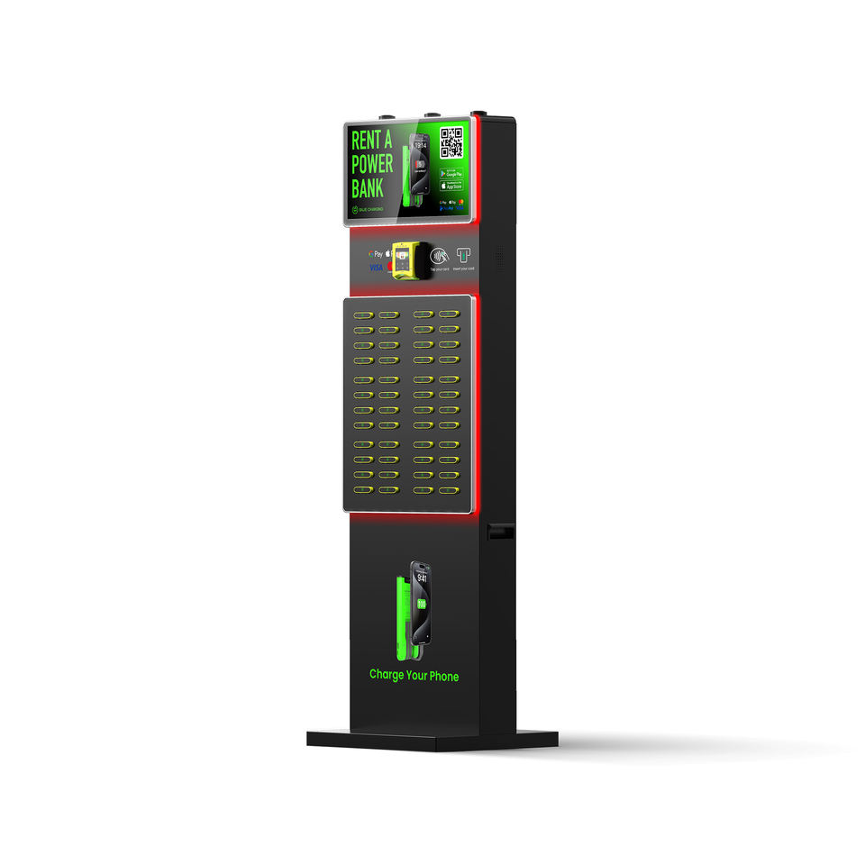 Estación de Carga Compartida con Pantalla de 21.5 Pulgadas y 48 Ranuras, con Lector de Tarjetas POS Integrado para Restaurantes y Uso en Comercios Minoristas