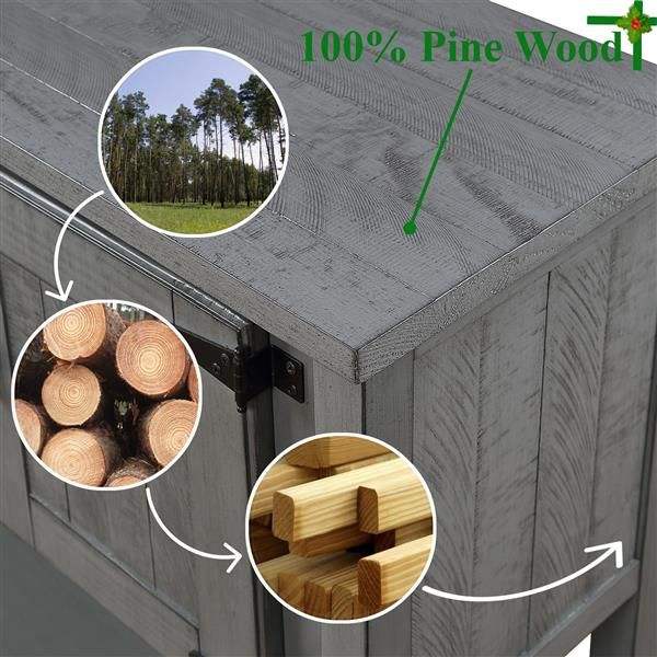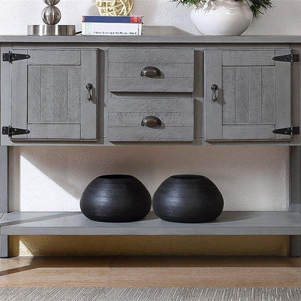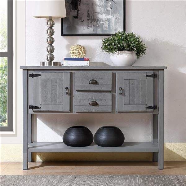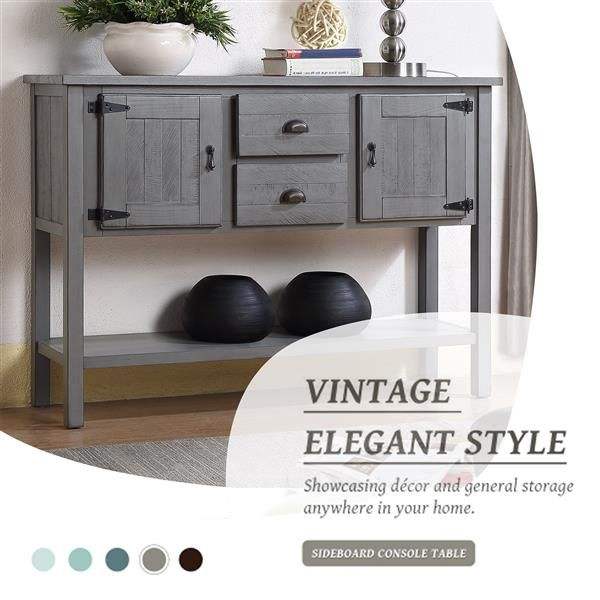 Aparador de Madera Maciza de 48 Pulgadas con 2 Cajones y Estante Inferior, Estilo Retro, Mueble de Comedor