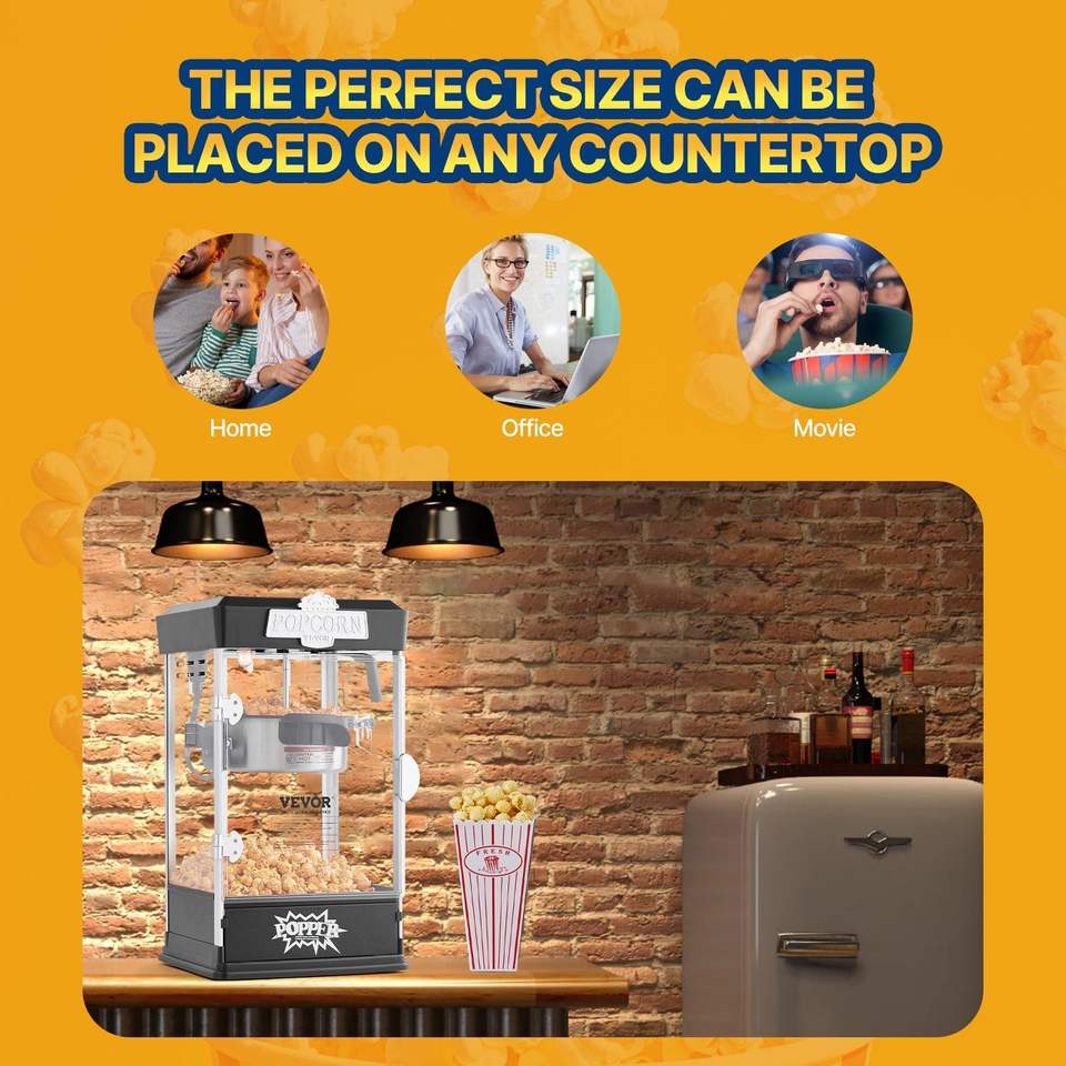 Máquina para Hacer Palomitas de Maíz de Mesa de 480W, Olla de 4 Oz y 3 Cucharas, Incluye Máquina para Hacer Palomitas de Maíz de 1.5 Galones por Lote para Noche de Cine