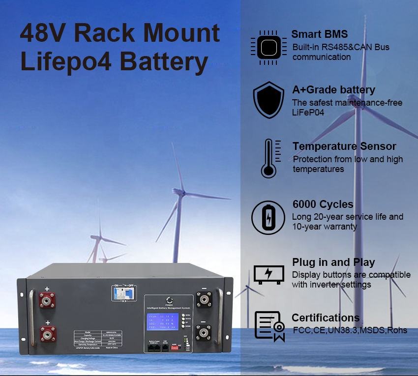 Batería de litio de montaje en rack de 48V Reemplazo de Pylontech Grado A Smart BMS 100Ah 200Ah Batería de litio de montaje en tierra