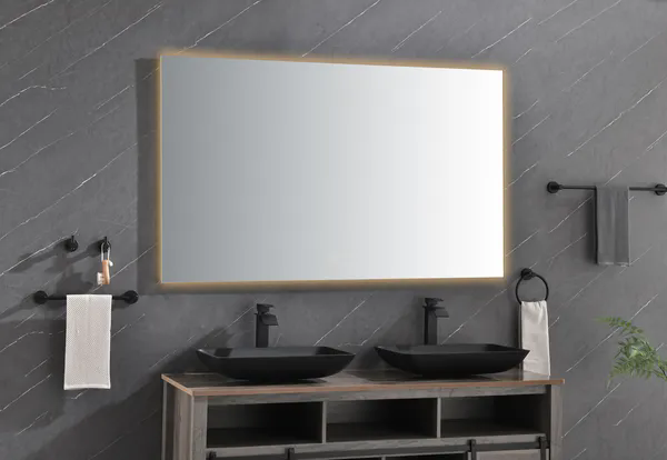 Espejo de Baño Moderno Ajustable con Retroiluminación LED de 48x36 Pulgadas, Marco de Aluminio, Espejo de Vanidad Montado en la Pared, Botón Táctil Inteligente