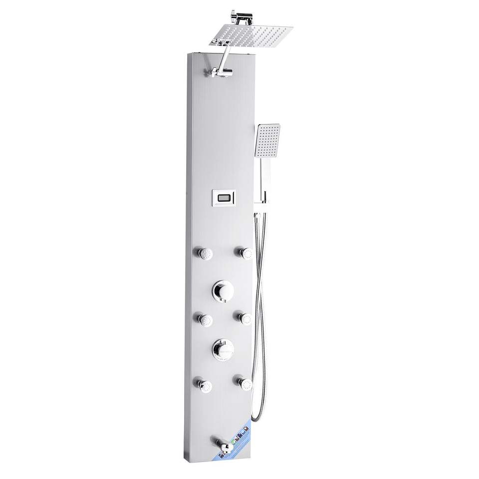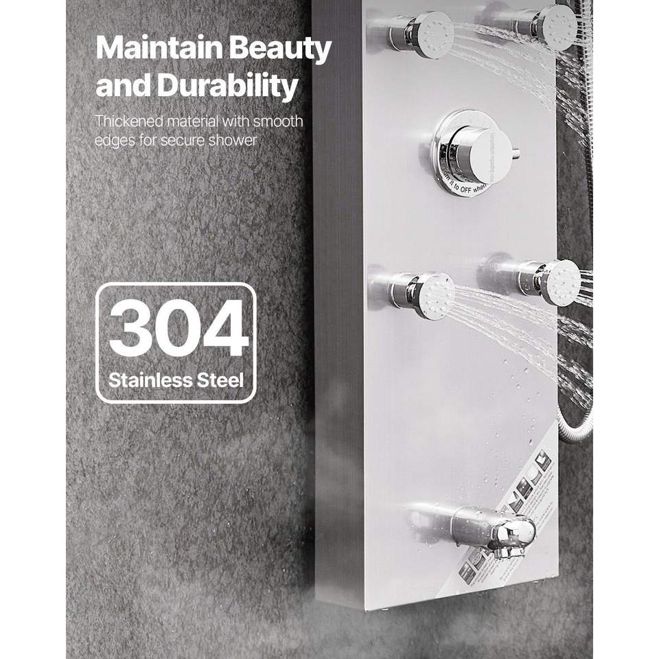 Sistema de Ducha de Torre de 49 Pulgadas con Cabezal de Ducha de Lluvia LED, Grifo de Pared con 4 Funciones, 6 Jets de Cuerpo, Ducha de Mano, Boquilla para Bañera, Acabado Cepillado