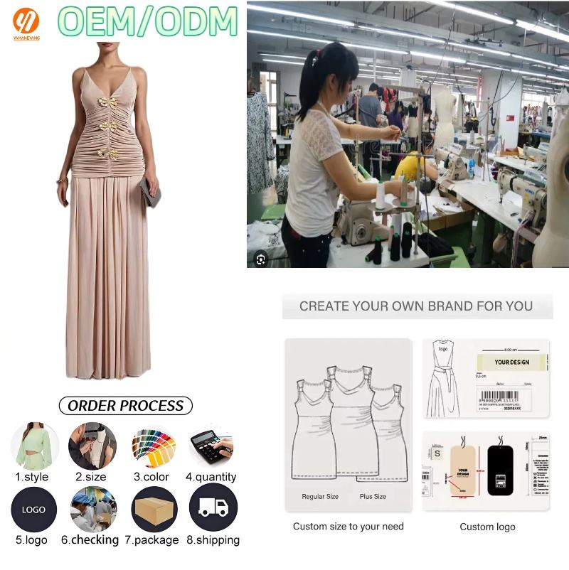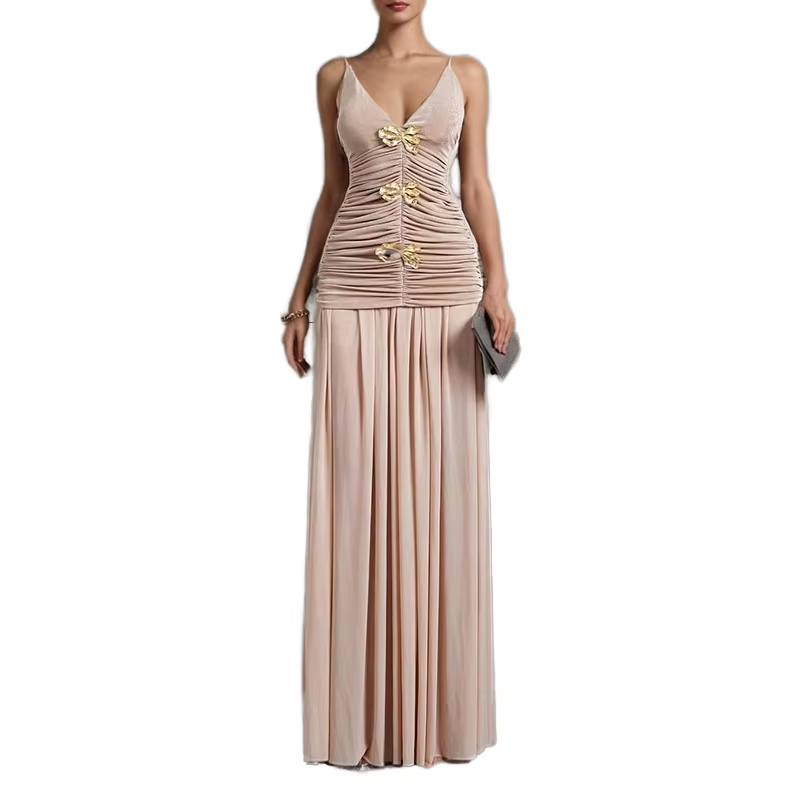 Vestido Largo Plisado Elegante Premium 4977 con Cuello en V, Tirantes Finos, Sin Mangas, para Fiesta de Noche