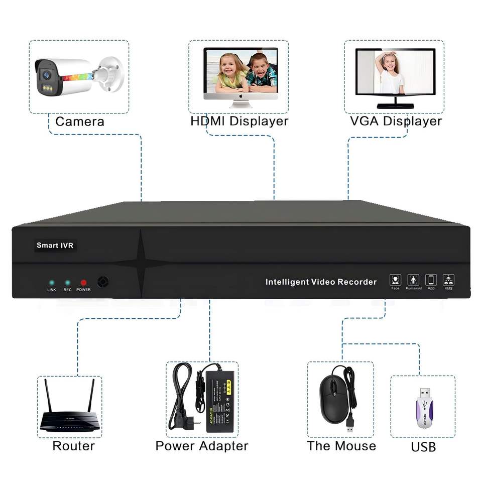 De Audio de dos vías, Reconocimiento facial, Humanos de seguimiento de movimiento, Visión nocturnaCaracterísticas especiales