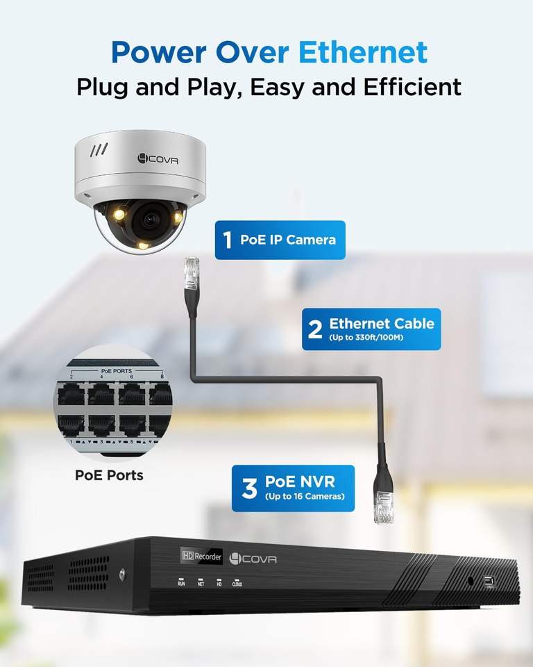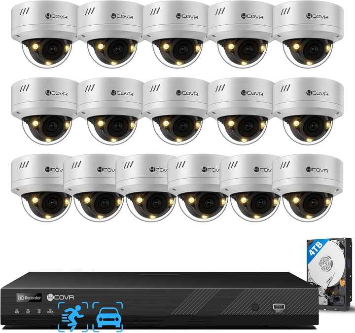 Sistema de Cámaras de Seguridad 4COVR de 16 Canales para Negocios, NVR 4K de 16 Canales, Disco Duro de 4 TB, Cámaras IP PoE de 16X 5MP IK10 con Domo, Doble Luz y Visión a Todo Color