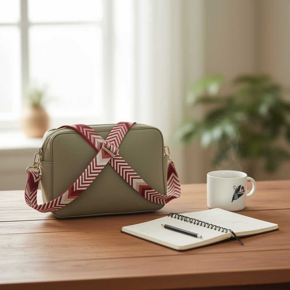 Cinta de 4 cm con flecha en color granate para correa de bolso