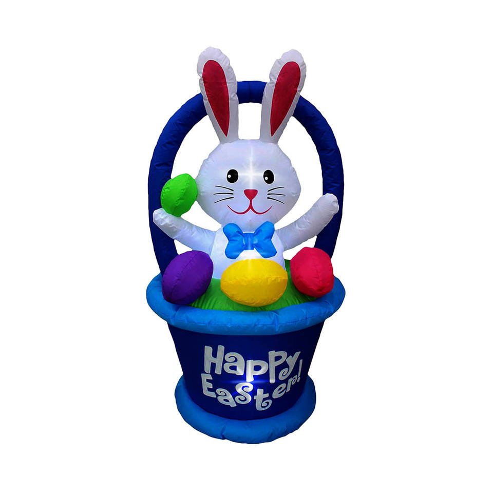 Decoración inflable de Pascua de 4 pies: Conejo en cesta con huevos