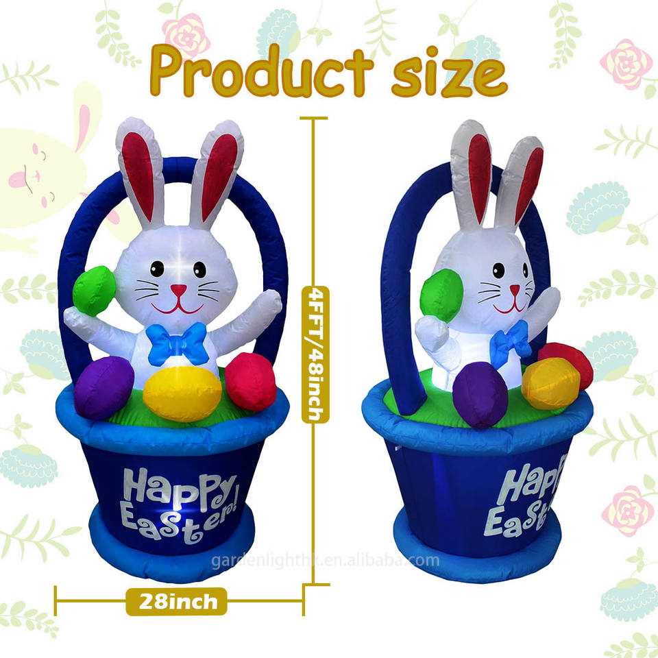 Nombre del producto:Decoración inflable de Pascua de 4 pies: Conejo en cesta con huevos