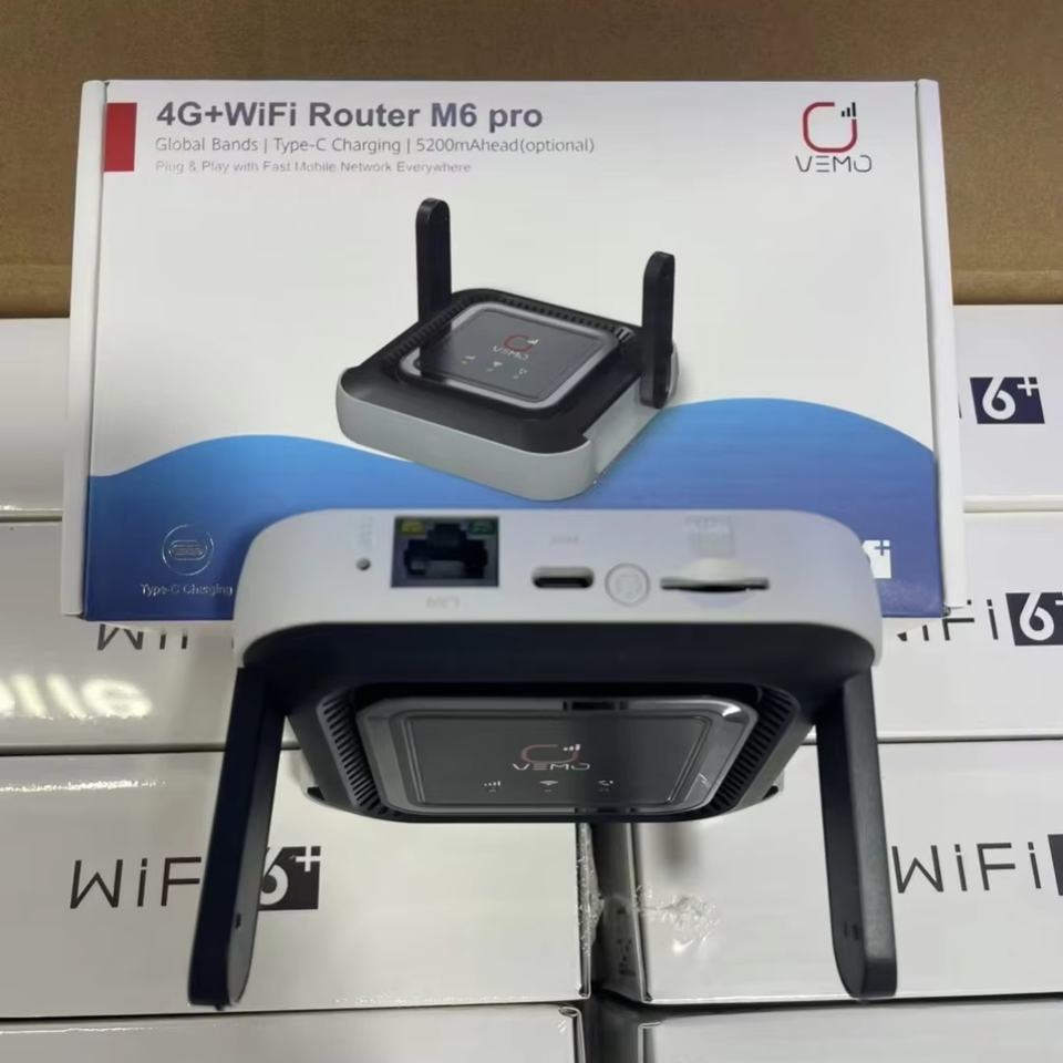 Router CPE 4G con Ranura para Tarjeta SIM VEMO M6 Pro CPE Router LTE 4G con Batería, Puerto LAN RJ45 y Antenas