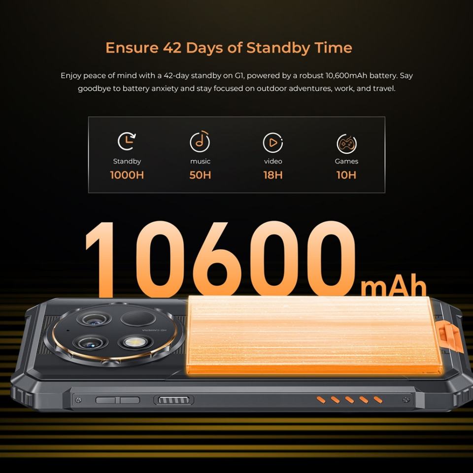 Teléfono Inteligente Resistente 4G a Precio Económico, 6+256 GB, Android 14, Cámara Principal de 48MP, 10600 mAh, Carga Rápida de 18W, Cámara Frontal de 5MP, T606, Oukitel G1
