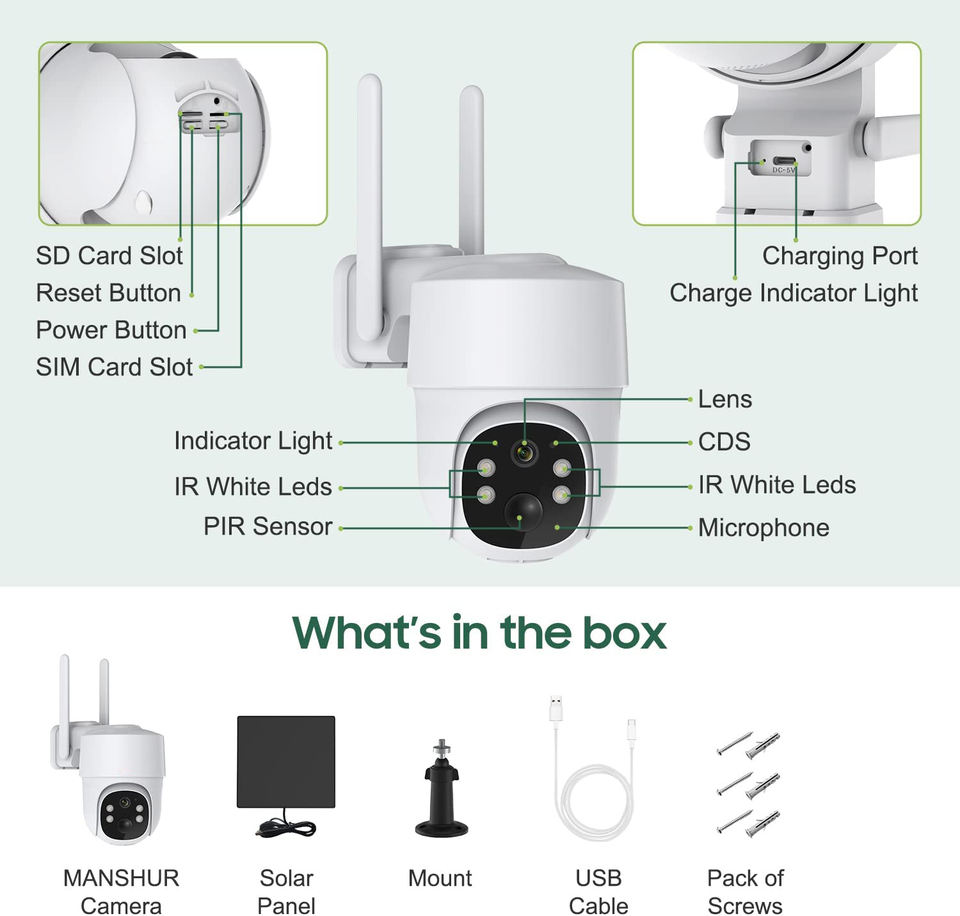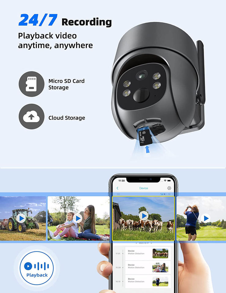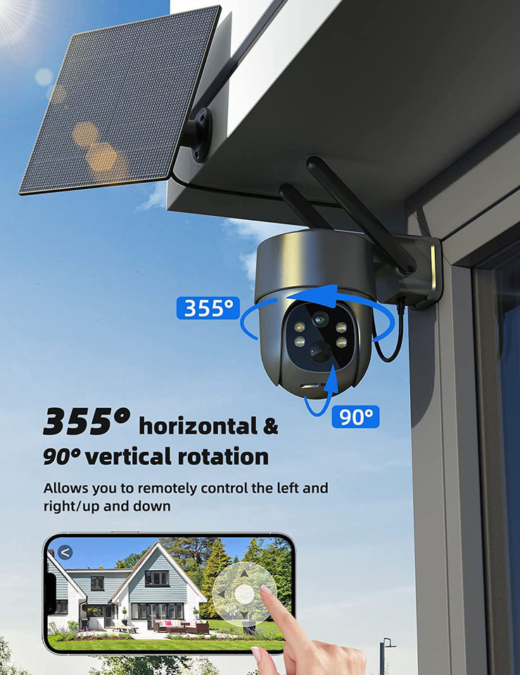 Cámara de Seguridad Celular 4G LTE Solar con Tarjeta SIM, Sin WiFi, Telecámara Exterior 2K/3MP/4MP, Videocámara PTZ