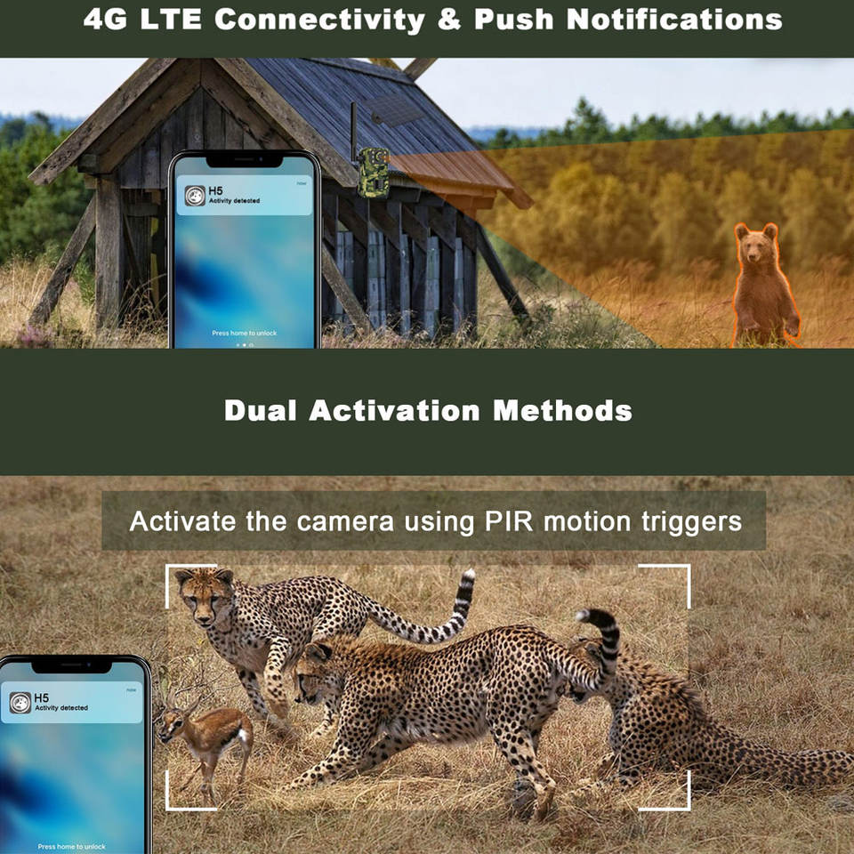 Cámara de ciervo de seguimiento celular inalámbrico 4G SMS, cámara de visión nocturna HD de caza activada por movimiento impermeable al aire libre